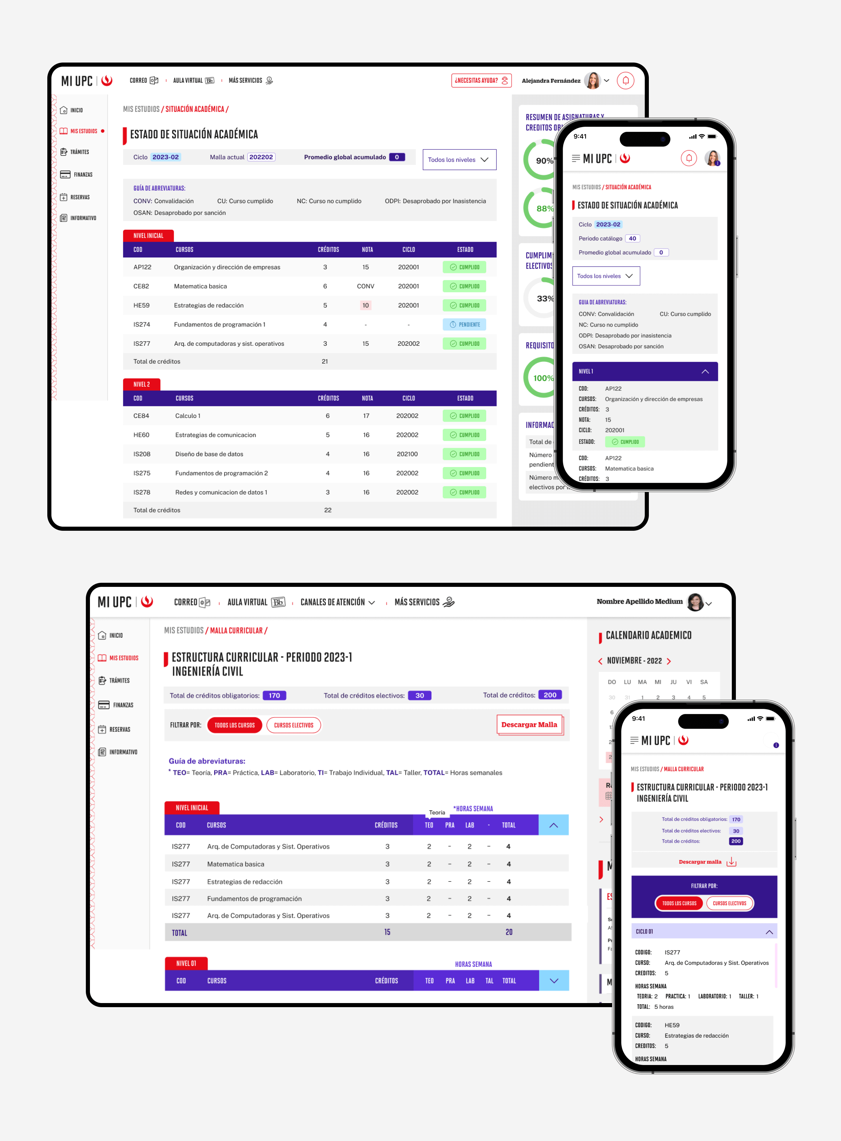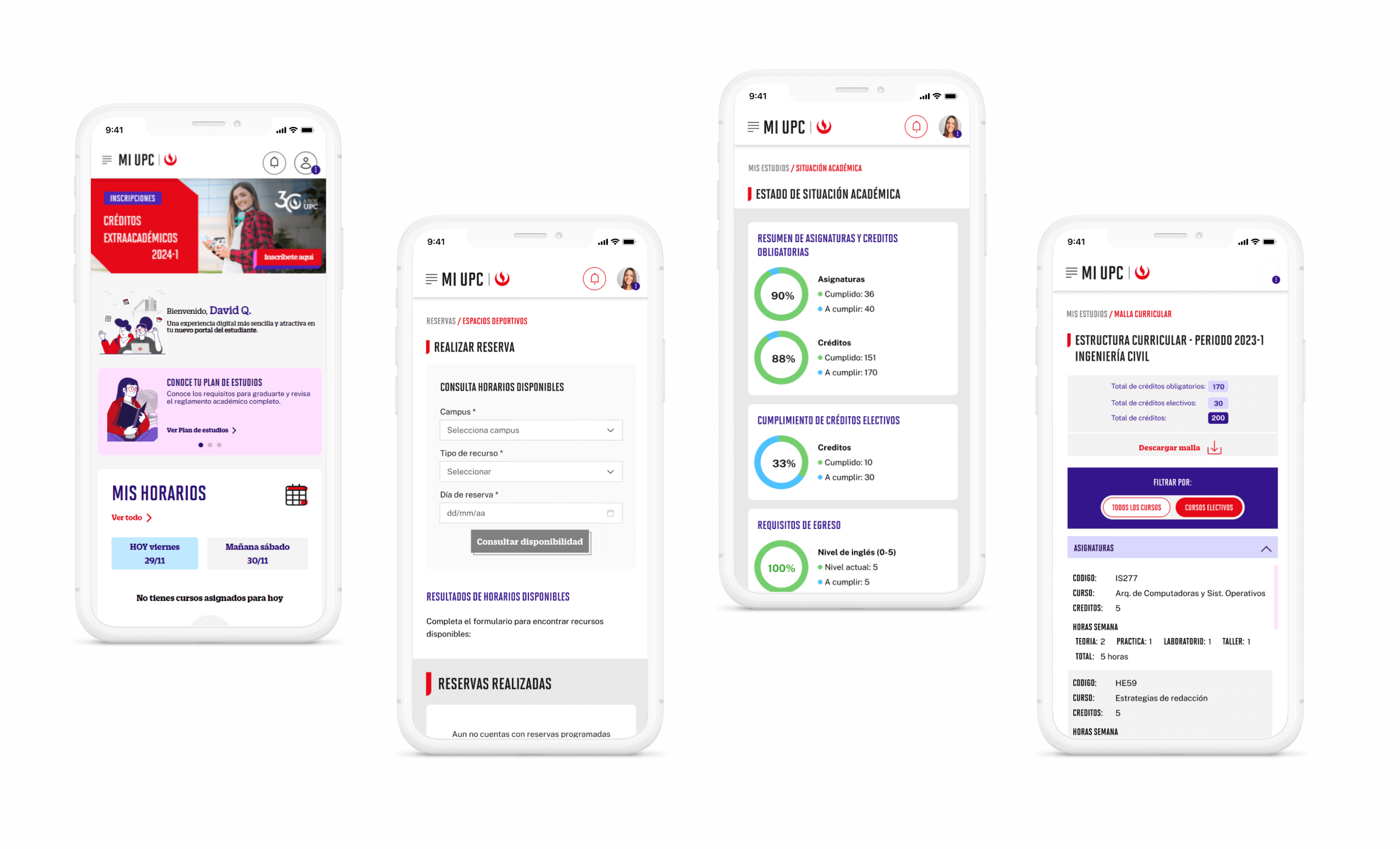 Realicé pruebas de usuario con diseños en mediana fidelidad, presentando propuestas a los alumnos para recopilar sus comentarios. Esta etapa fue clave para validar ideas, detectar oportunidades de mejora y refinar el diseño antes de pasar a la fase final.