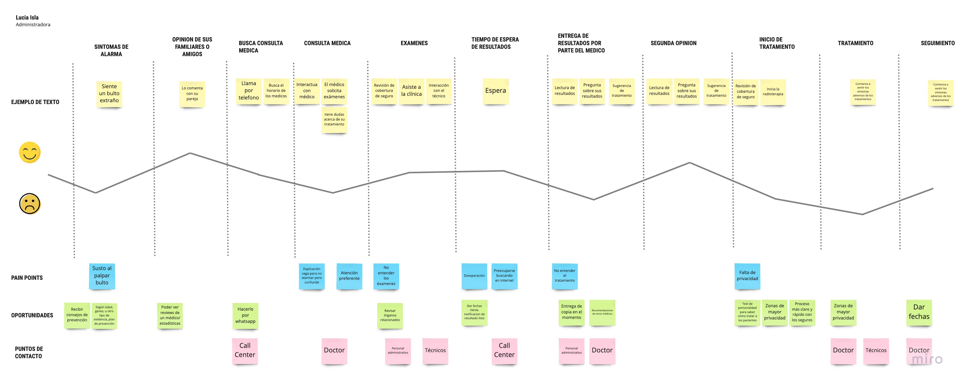 Preparé un mapa de viaje para entender cómo Lucia usaría esta función nueva y agregada. Este mapa muestra las expectativas, los puntos de contacto, las intenciones, las acciones y los puntos débiles de Lucia.