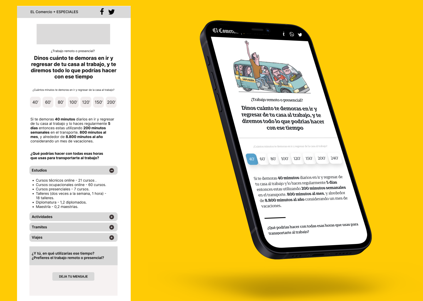 El Grupo El Comercio, a través de sus especiales en su canal online, se enfrentó al desafío de ofrecer a sus lectores un contenido diferenciado que no solo entretuviera, sino que también proporcionara un valor informativo significativo. En este proyecto de UX Design, mi enfoque se centró en la creación de landing pages interactivas y contenido de alto impacto para mejorar la experiencia de los usuarios y cumplir con los objetivos comerciales del Grupo.