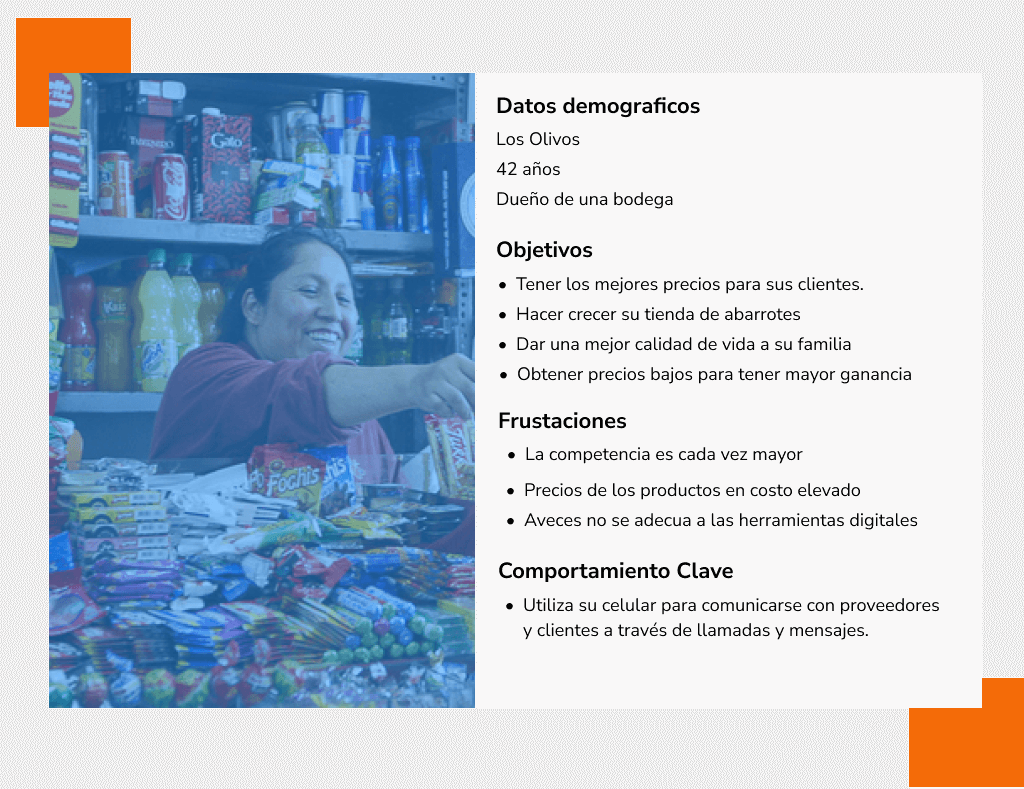 Investigación de Usuarios: Realicé entrevistas y encuestas con clientes bodegueros para comprender sus preferencias, necesidades y desafíos en el proceso de pedidos.
